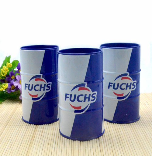 鐵盒的印刷工藝采用的是專色印刷,顏色采用藍(lán)白相間的設(shè)計(jì),比較簡單大氣,同時藍(lán)白相間的設(shè)計(jì)比較跳躍,不會給人沉悶的感覺。罐身中間有福斯大寫英文FUCHS,英文上下有類似旋鈕設(shè)計(jì),紅藍(lán)相間為整個鐵盒增加了色彩上的跳躍感和動感。