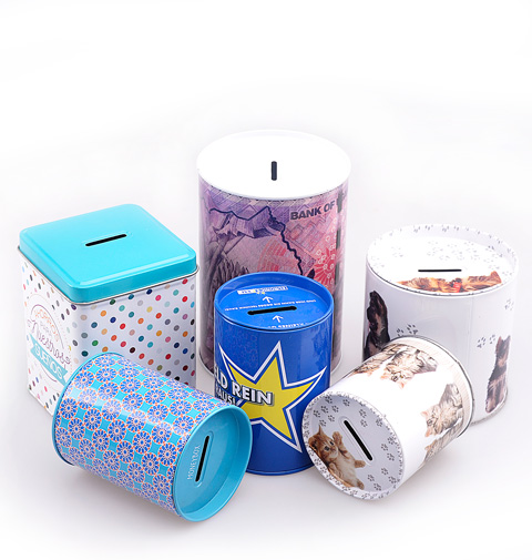 馬口鐵存錢罐的造型可以選擇不同的尺寸,方形圓形的都可以根據(jù)需求個(gè)性化定制,封底結(jié)構(gòu),天地蓋設(shè)計(jì),印刷可以選擇四色或者專色印刷。