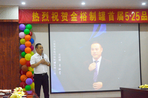 下午14:30,品牌日設(shè)立儀式在金裕制罐三樓會(huì)議大廳正式啟動(dòng)。金裕制罐首席品牌官章福春先生發(fā)表致辭,宣布每年的“525”作為金裕制罐的品牌日。