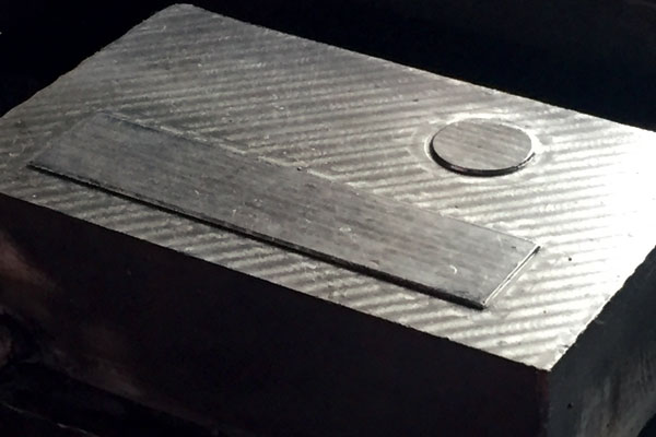 模具安裝調(diào)試完成之后,只需要把鐵料放上,經(jīng)過機器沖壓之后,凹凸字體工藝就完成了。